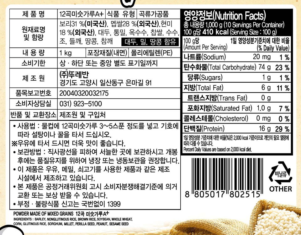 뚜레반 미숫가루(12곡 1Kg/EA)