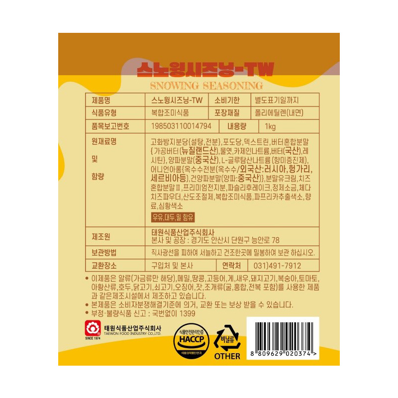 태원식품 스노윙시즈닝(1Kg/EA) 이미지