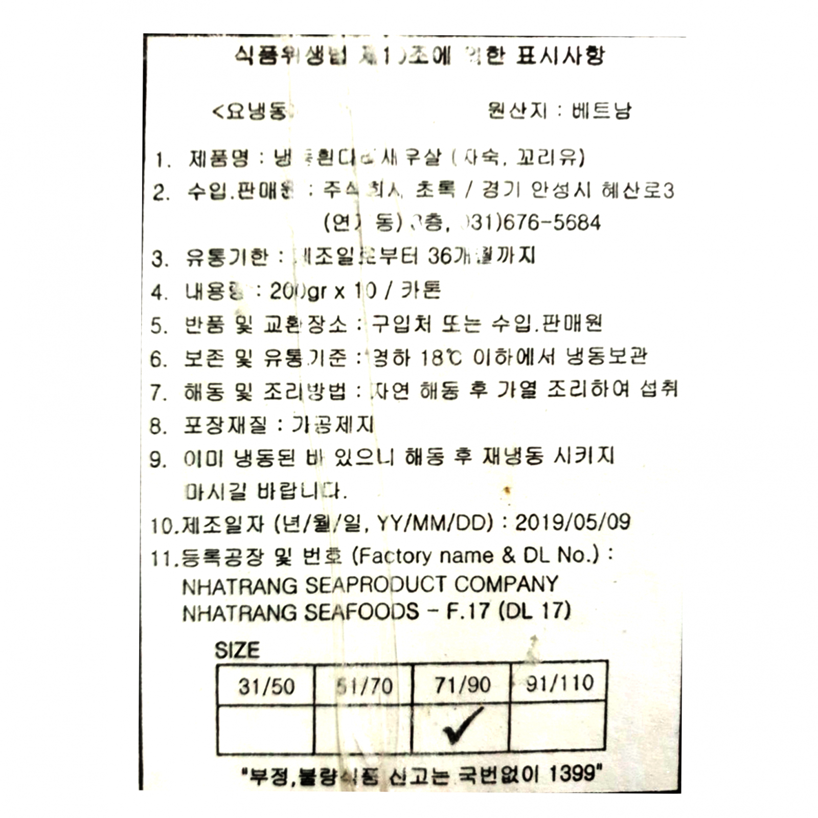 PRIDE 자숙칵테일새우(CPDTO_71~90 200g/EA)