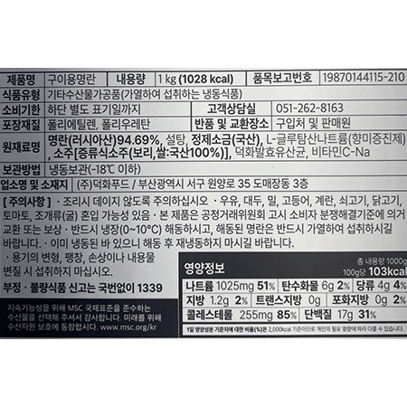 덕화푸드 구이용명란(명란94.69%_18±3개 구이용 1Kg/BOX)