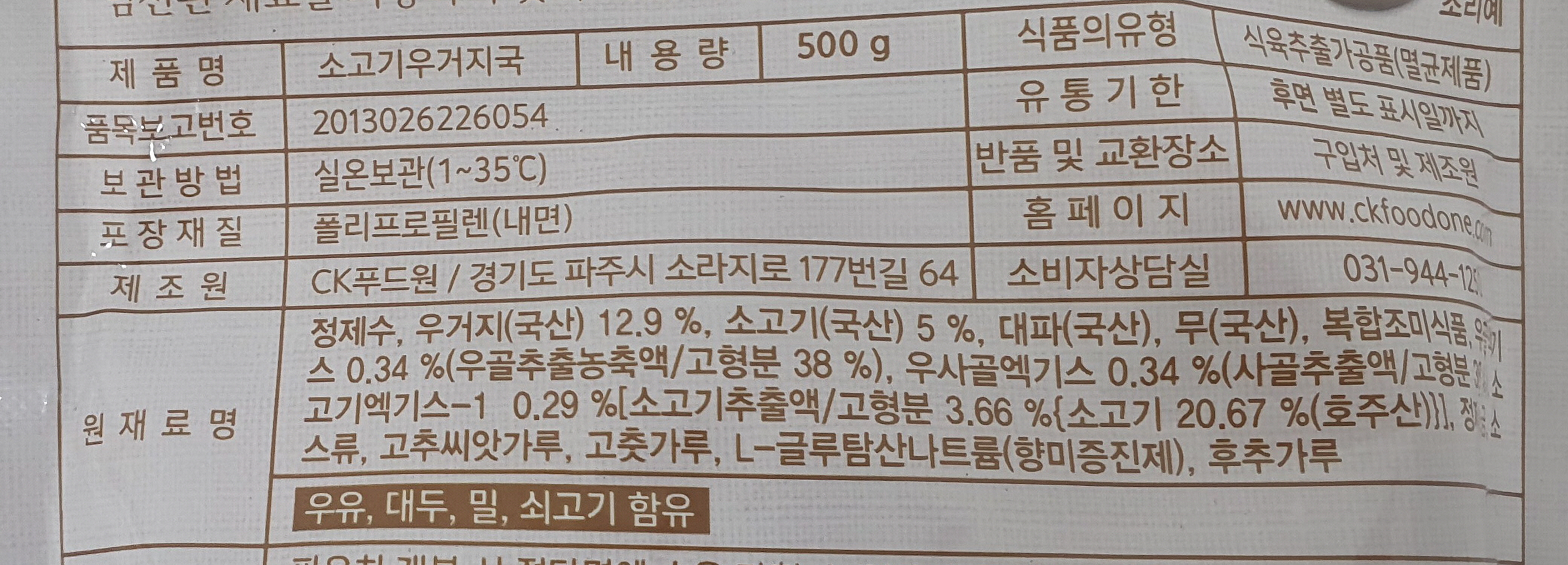 CK후드원 소고기우거지국(500g/EA) 이미지