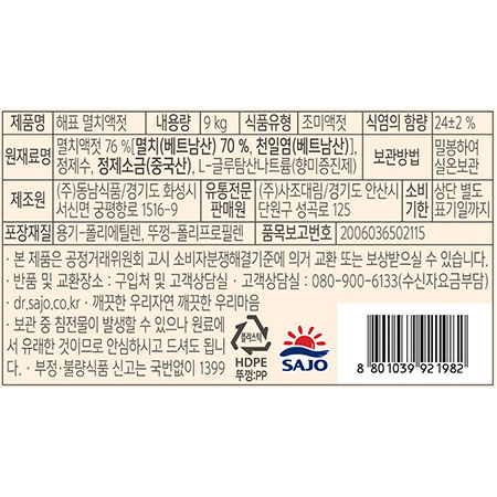 사조해표 멸치액젓(9Kg/EA) 이미지