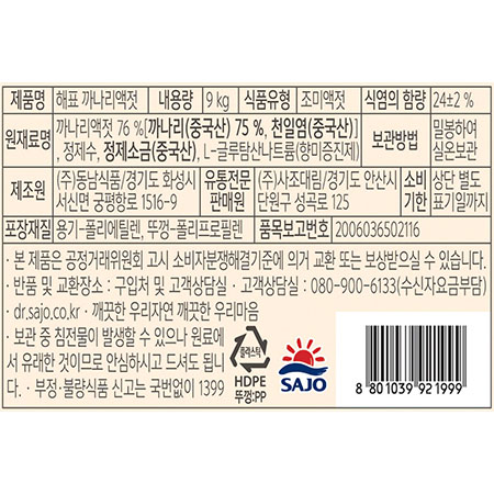 사조해표 까나리액젓(9Kg/EA)