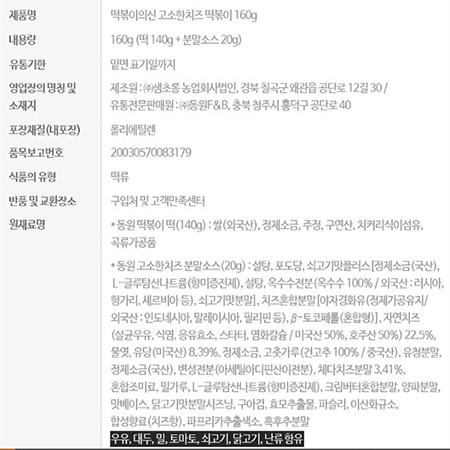 동원 떡볶이의신고소한치즈컵떡볶이(160g/EA)