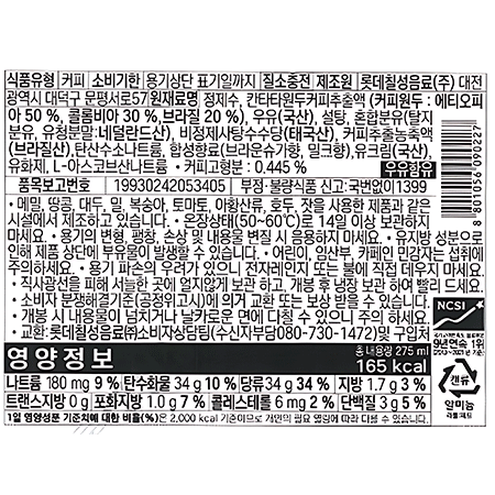 칸타타 콜드브루흑당라떼(275ml 275g/EA)