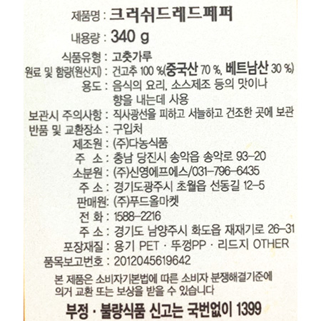 스위트웰 레드페퍼(NEW_크러쉬드 340g/EA) 이미지