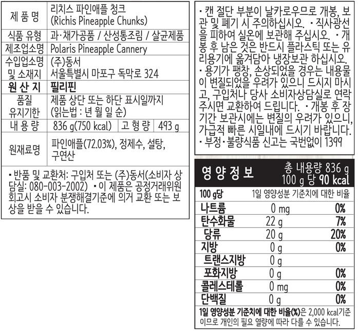 리치스 파인애플캔(청크 836g/EA) 이미지