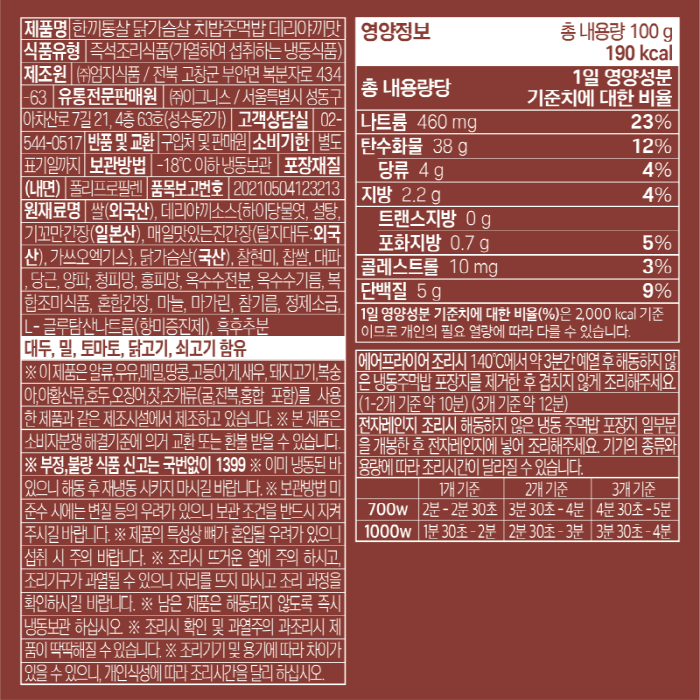 한끼통살 닭가슴살치밥주먹밥(데리야끼맛 100g/EA)