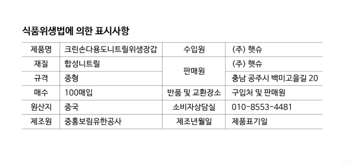 크린손 니트릴장갑 (파란색_중_100입 EA)