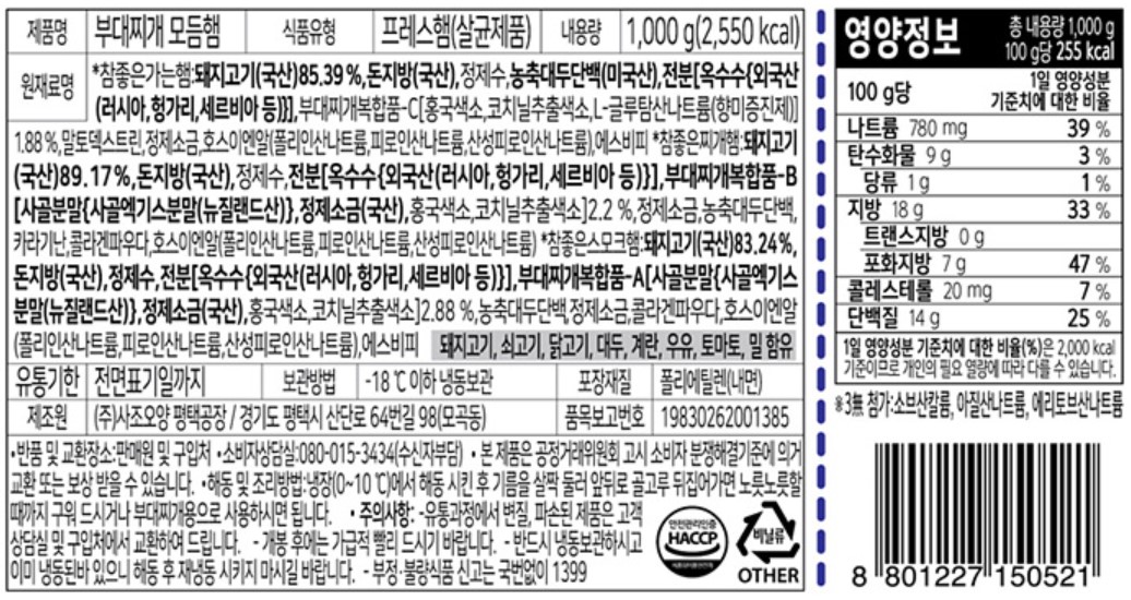 사조오양 부대찌개모둠햄(1Kg/EA)