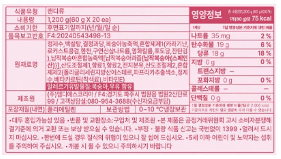 MDS 젤리블리(납작복숭아_60g*20개입_개별포장 1.2Kg/EA) 이미지