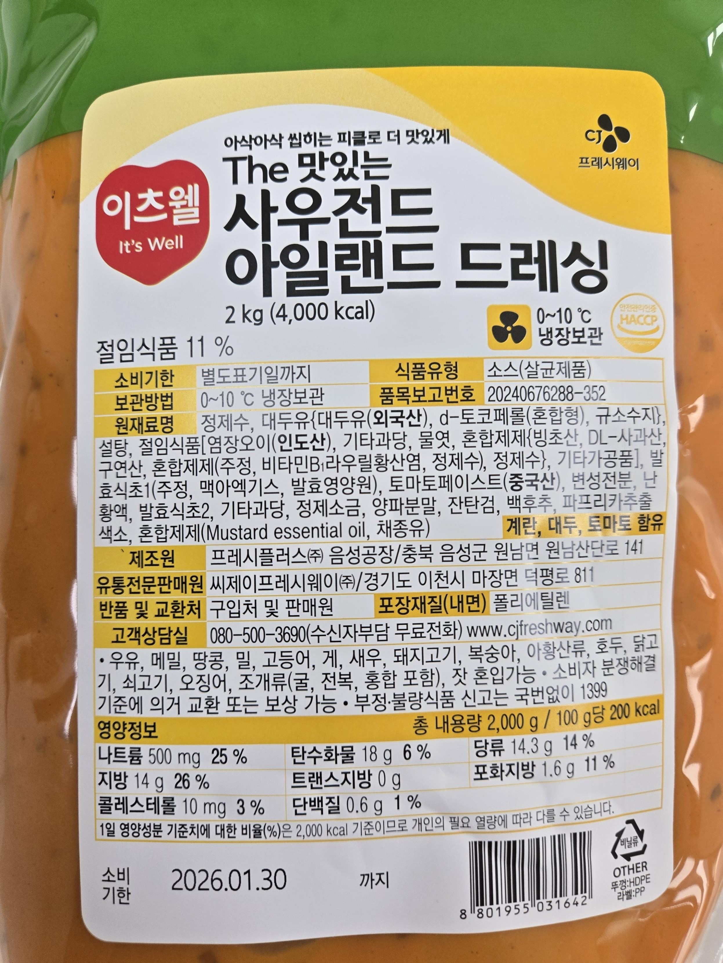 이츠웰 사우전드아일랜드드레싱(The맛있는 2Kg/EA)