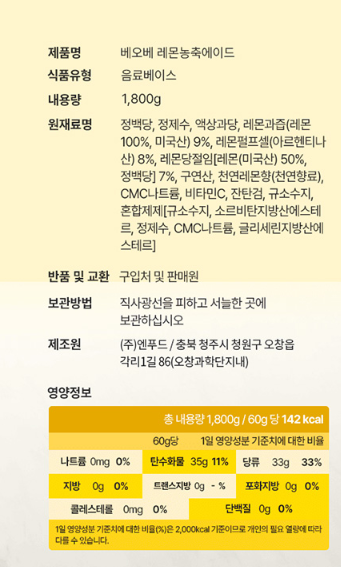 베오베 레몬농축에이드(외식전용 1.8Kg/EA) 이미지