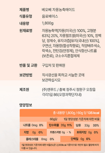베오베 자몽농축에이드(외식전용 1.8Kg/EA)