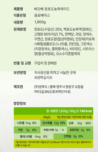 베오베 청포도농축에이드(외식전용 1.8Kg/EA)
