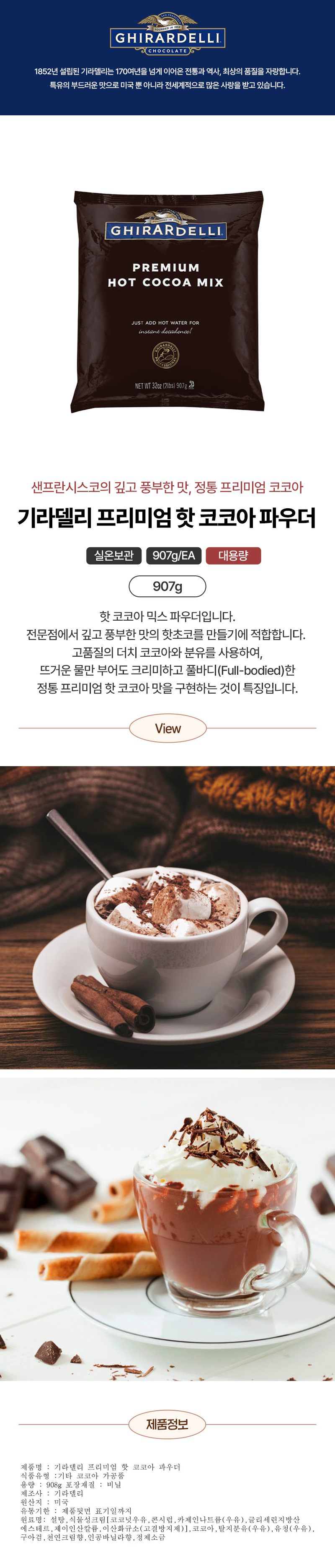 기라델리 프리미엄핫초코파우더(외식전용 907g/EA)