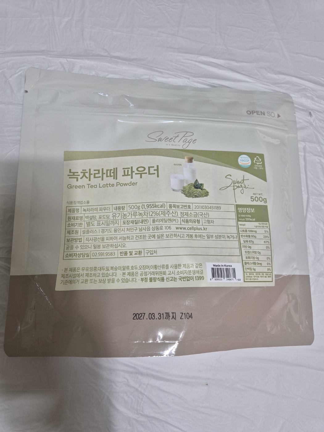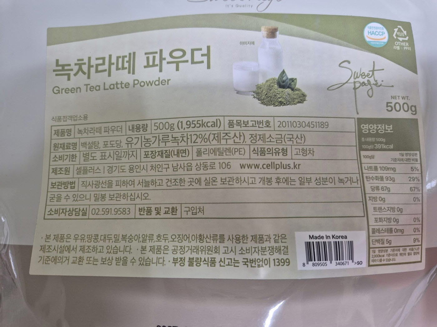 셀플러스 녹차라떼파우더(외식전용 500g/EA)