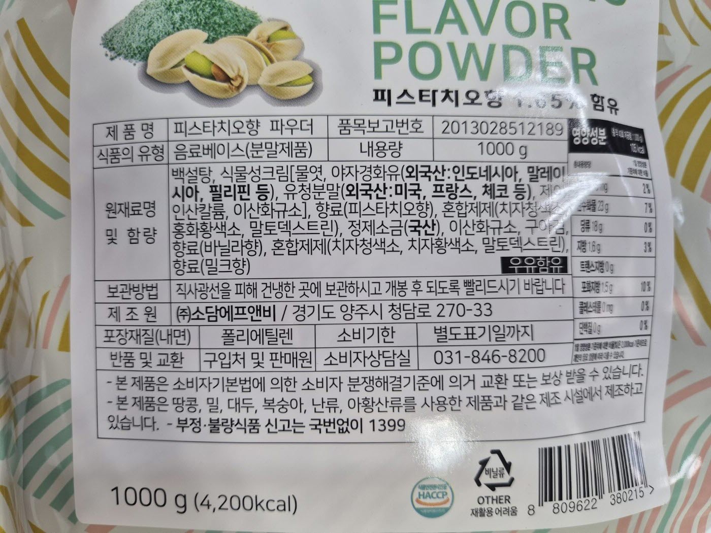 소담 피스타치오향 파우더(외식전용 S 1Kg/EA)