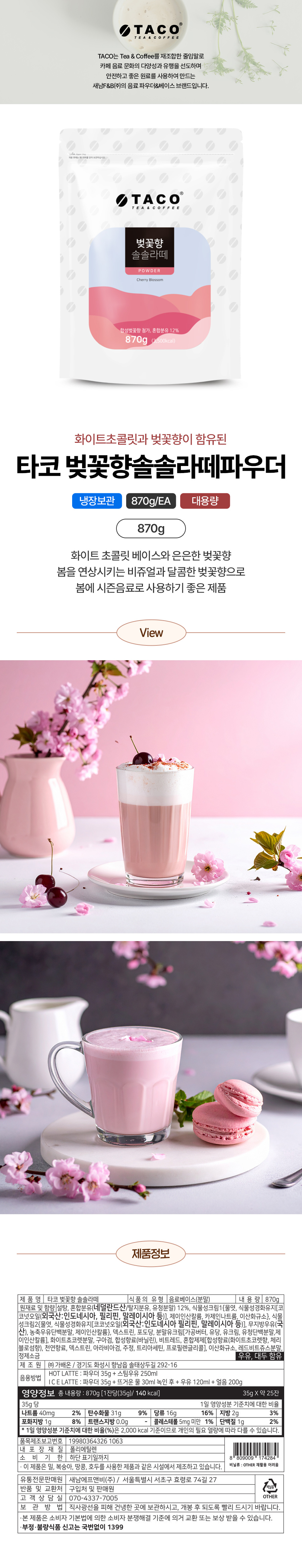 타코 벚꽃향솔솔라떼(외식전용 1Kg/EA)