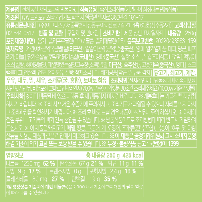 한끼통살 저당도시락(떡볶이맛 250g/EA)