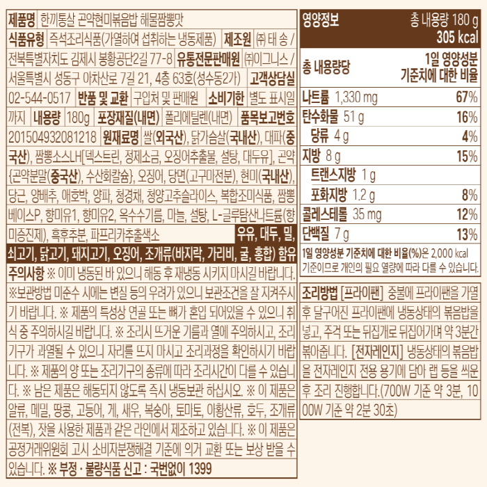 한끼통살 곤약현미볶음밥(해물짬뽕맛 180g/EA)