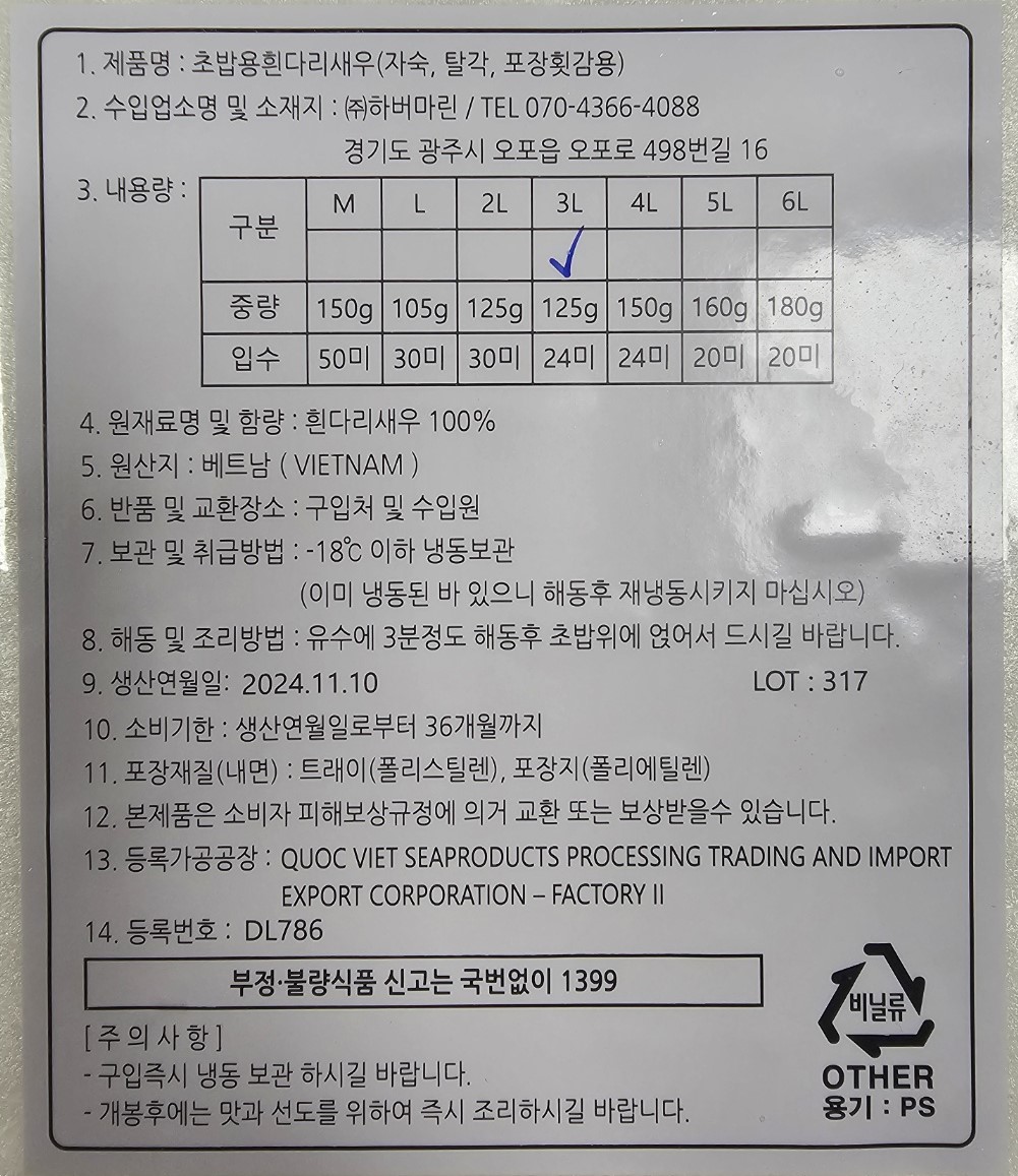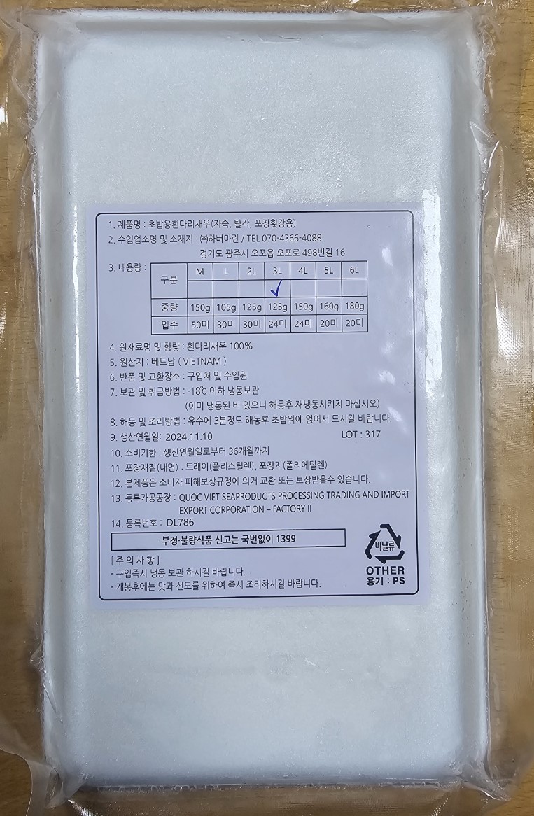 SJ 초새우(3L_24미 초밥용 125g/EA)