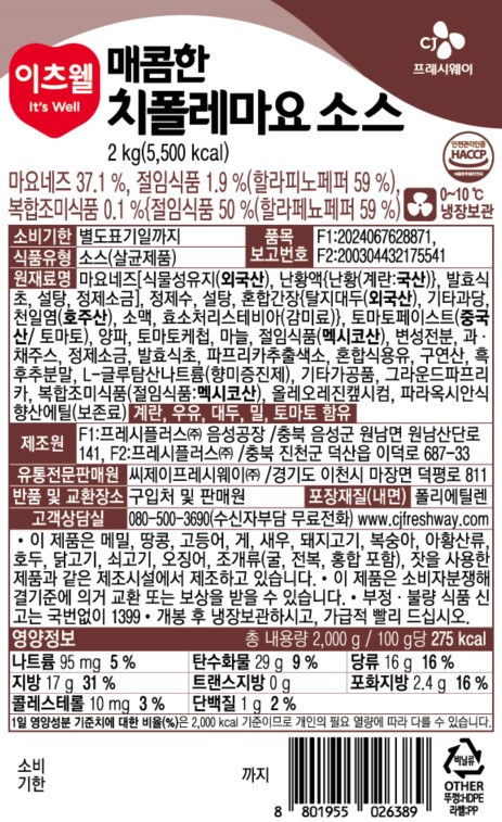 이츠웰 매콤한치폴레마요소스(저장용 2Kg/EA) 이미지