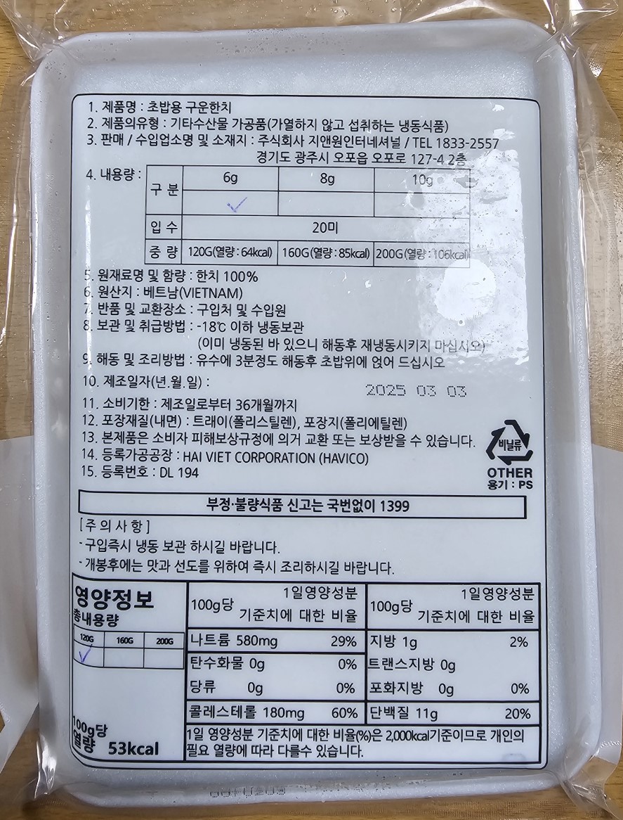 SJ 초한치(구운한치_6g*20미 120g/EA) 이미지