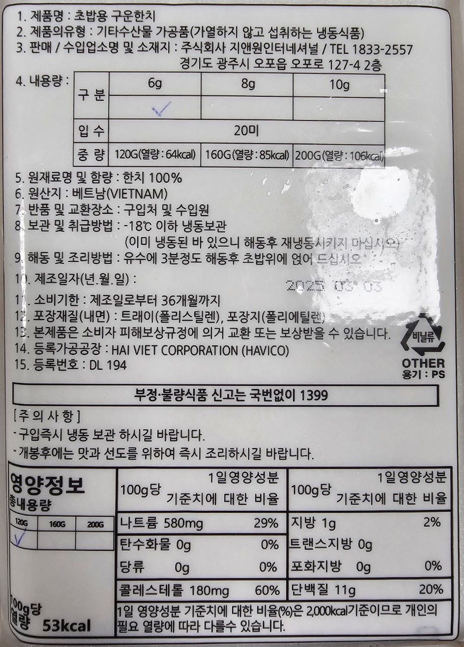 SJ 초한치(구운한치_6g*20미 120g/EA)