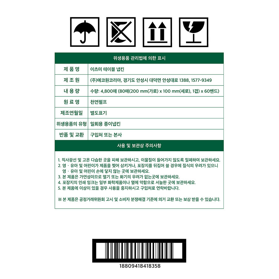 이츠미 테이블냅킨(4800매_80*60 BOX)