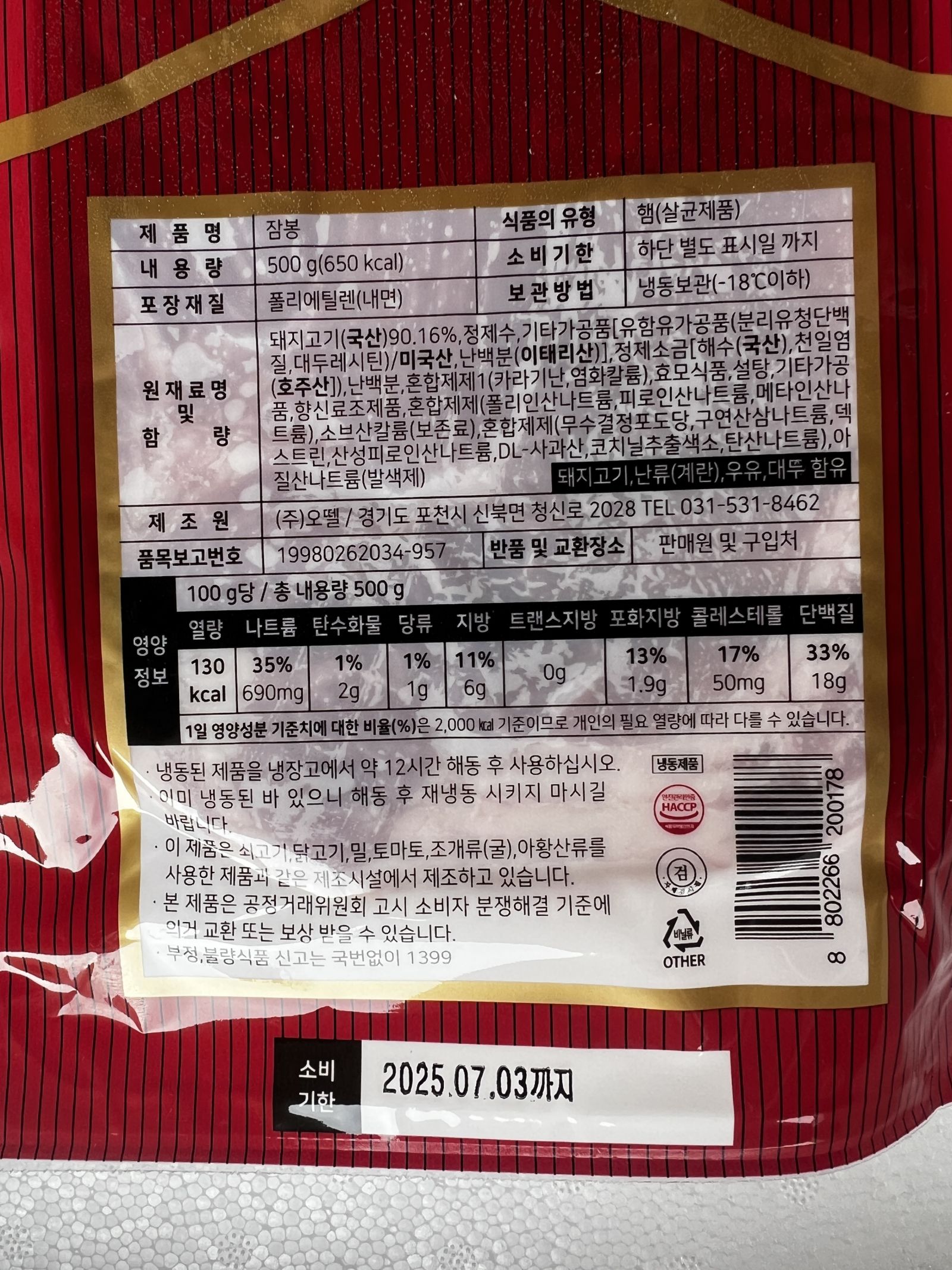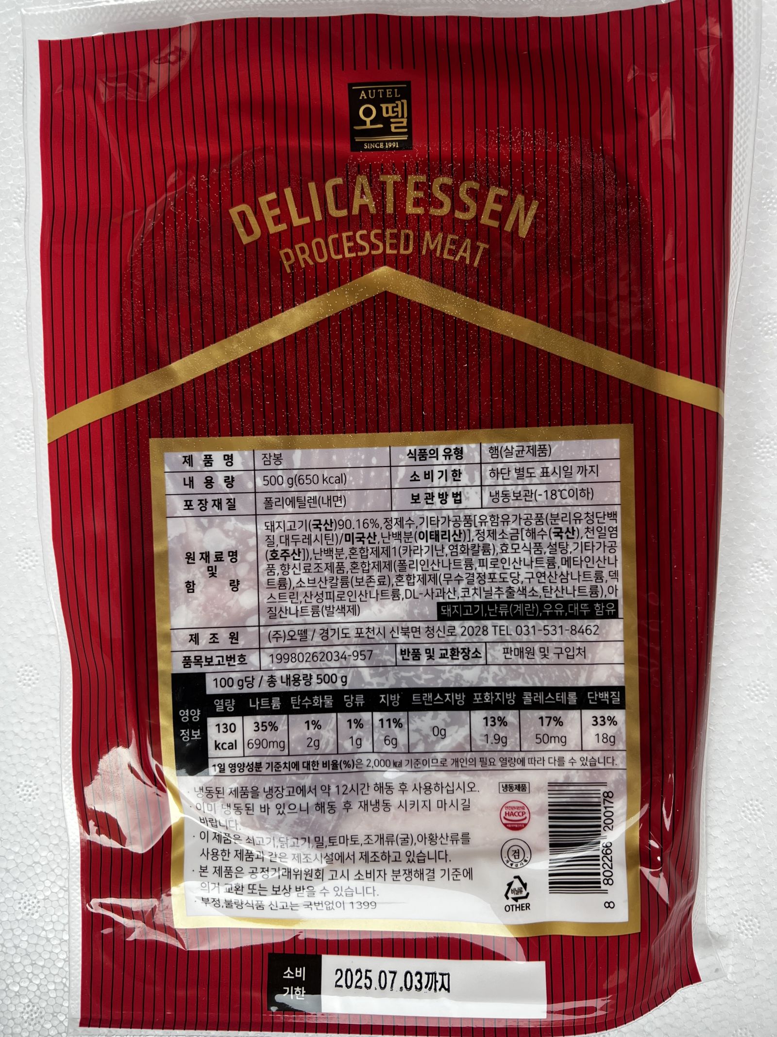 오뗄 잠봉(슬라이스 500g/EA)