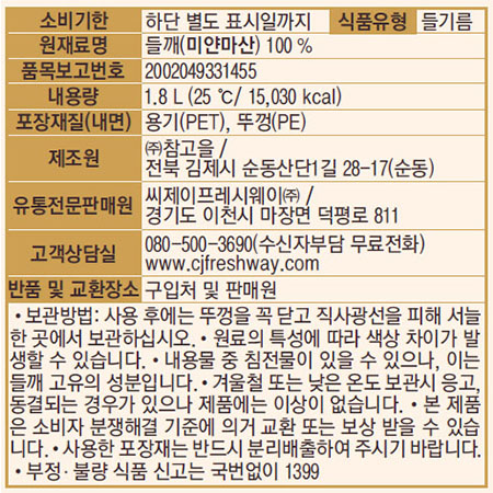 이츠웰_엄선 들기름(1.8L 1.65Kg/EA) 이미지