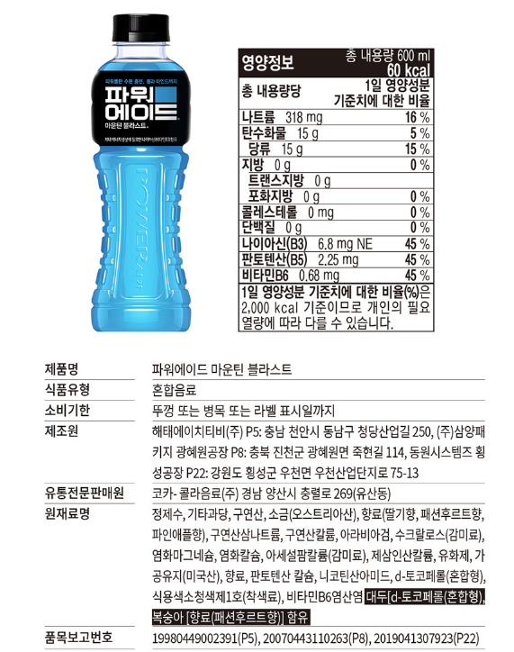 원재료명 및 함량