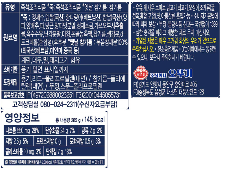 오뚜기 참치죽(용기 285g/EA) 이미지