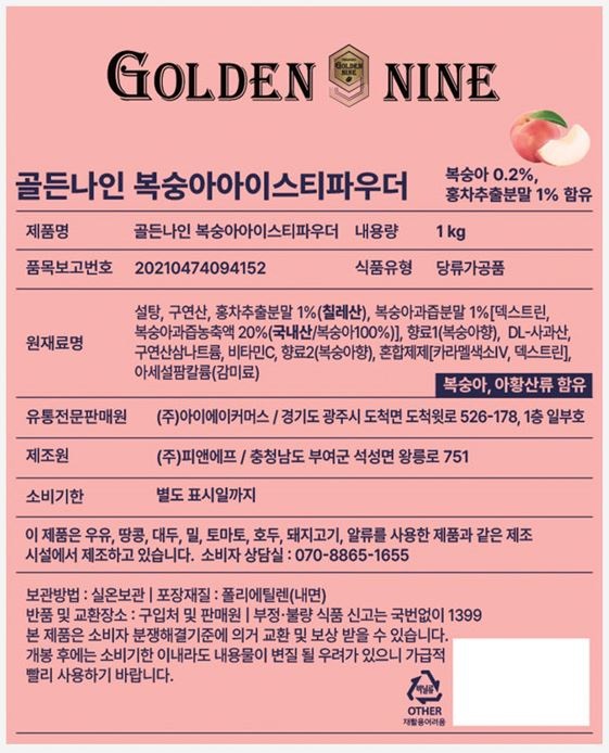 골든나인 아이스티파우더(복숭아 1Kg/EA) 이미지