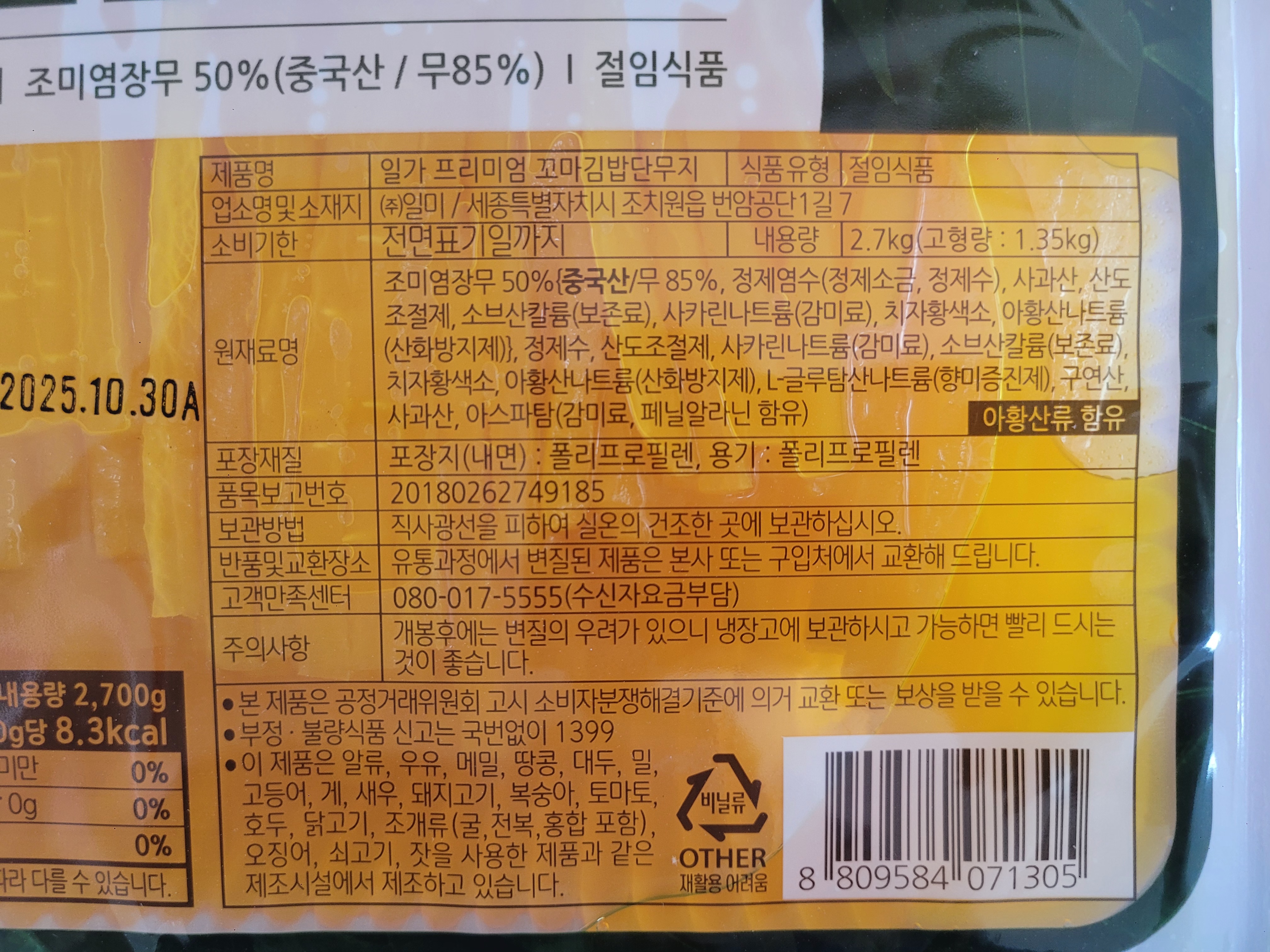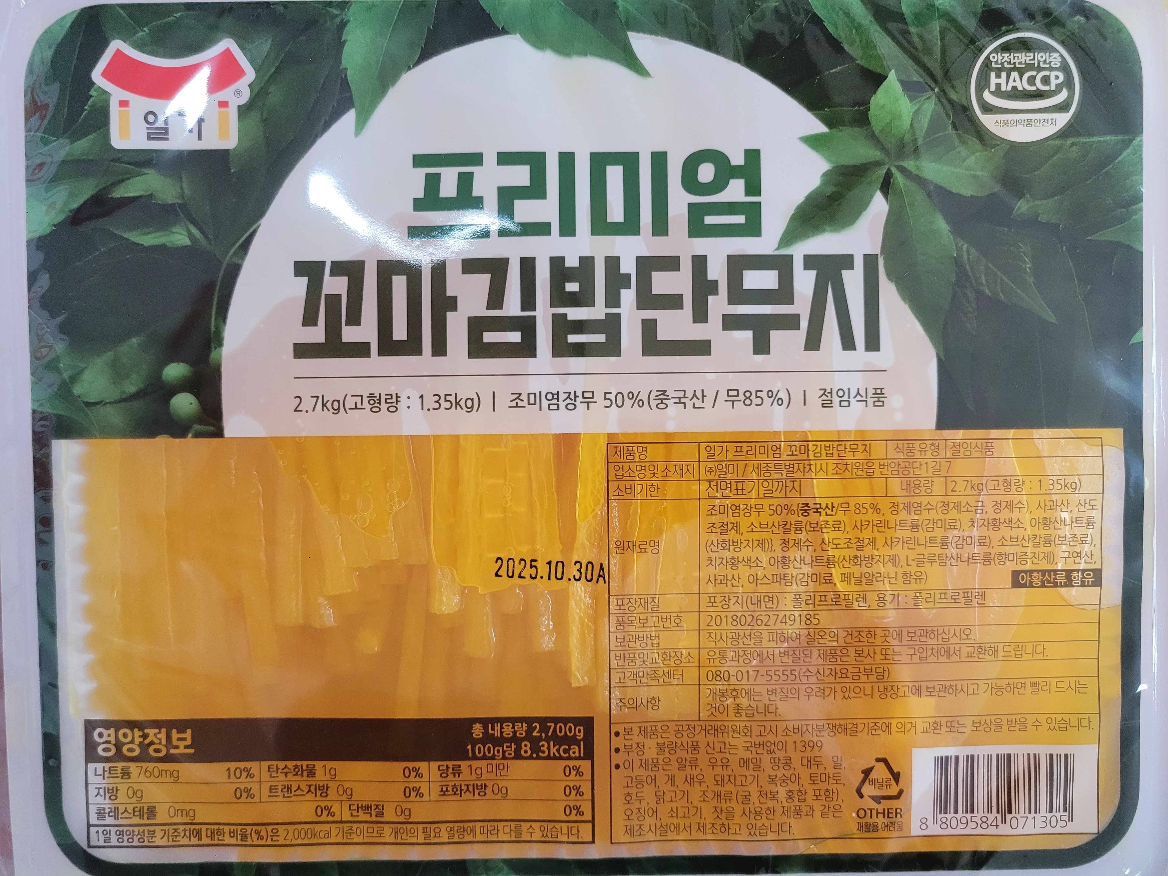 일가 꼬마김밥단무지(온라인용 6mm 2.7Kg/EA)