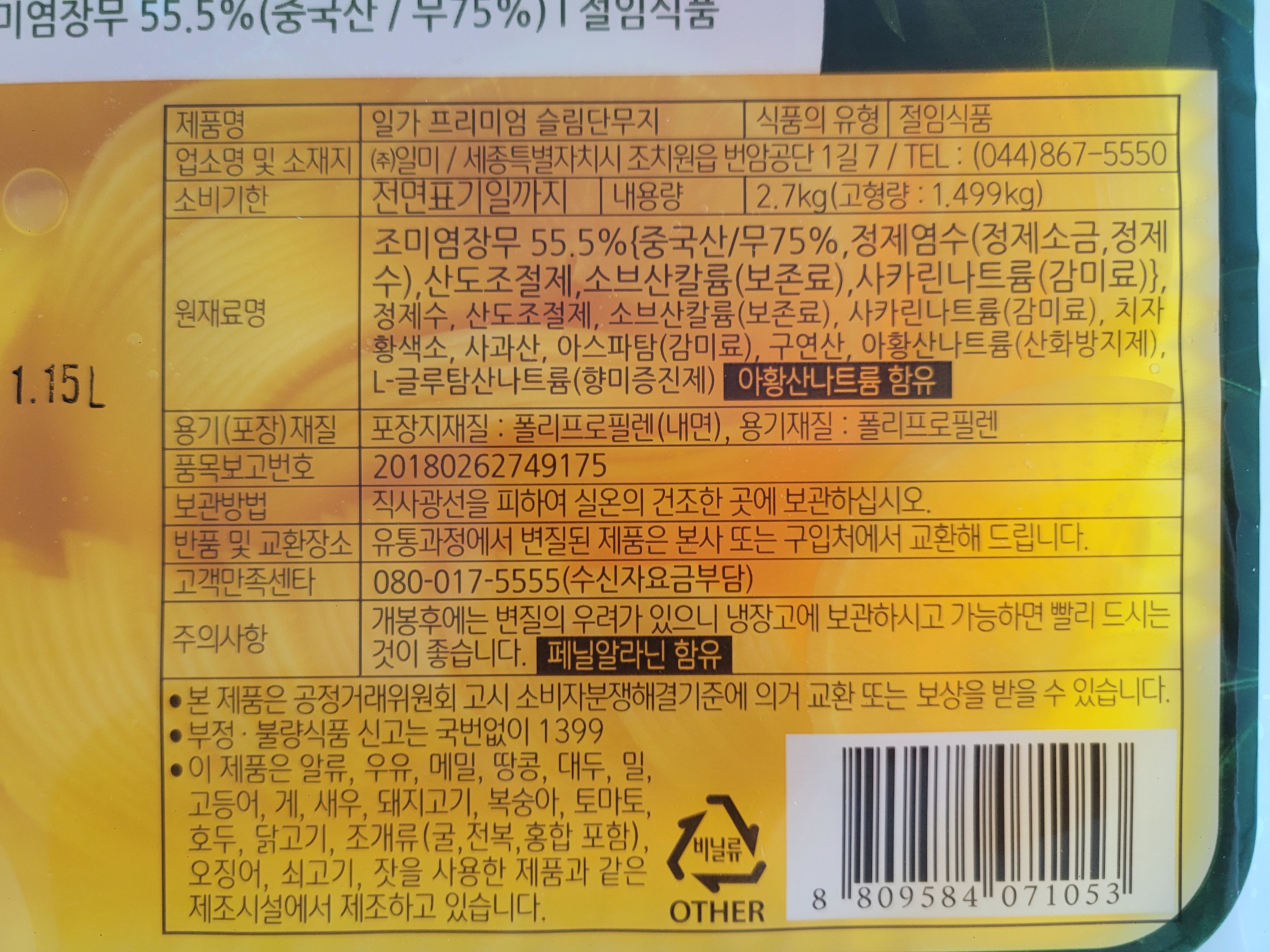 일가 단무지(온라인용 얇은반달 2.7Kg/EA) 이미지