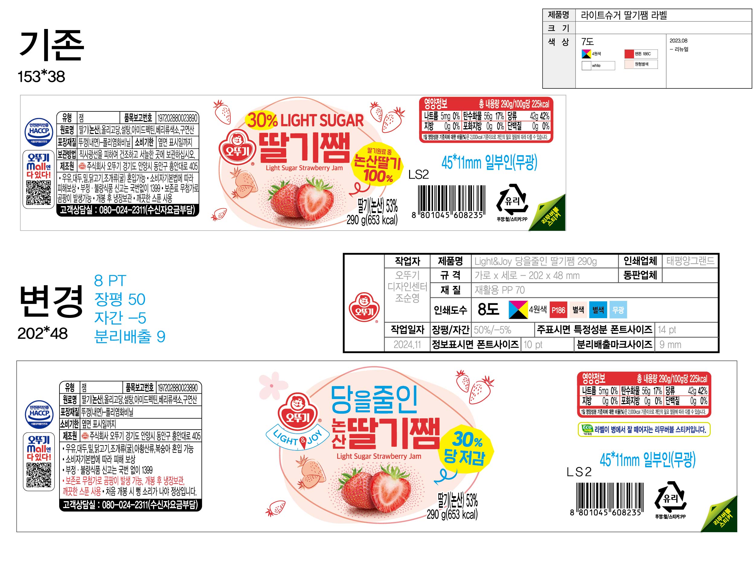 오뚜기_LIGHT&JOY 당을줄인논산딸기쨈(병 290g/EA)
