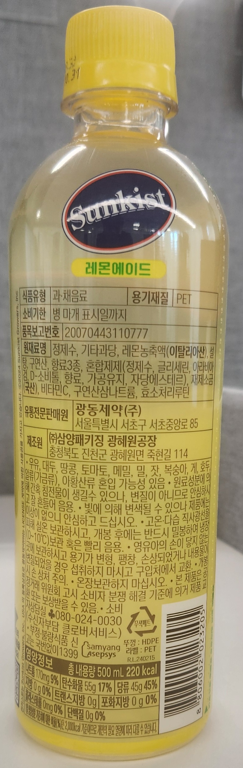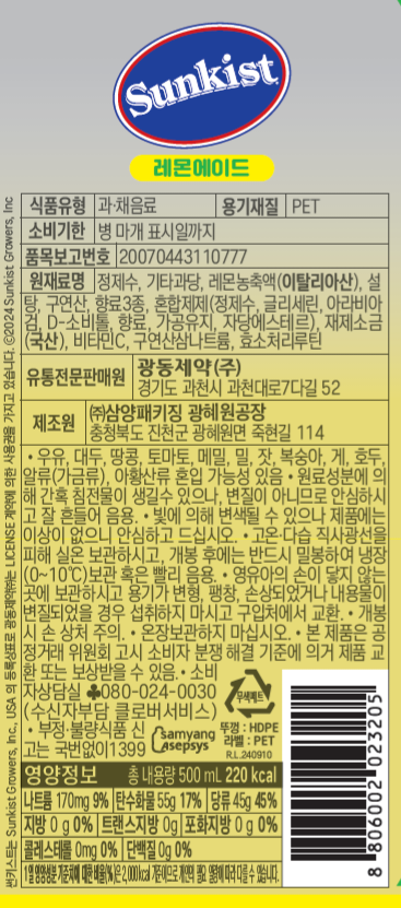썬키스트 레몬에이드(500ml*6입 3Kg/EA)