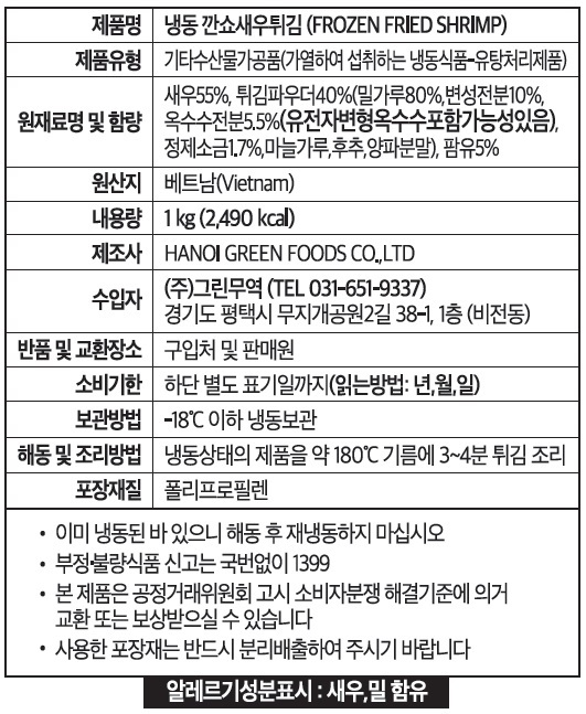 글로벌냉동 깐쇼새우튀김(12g*85±5입 1Kg/EA)