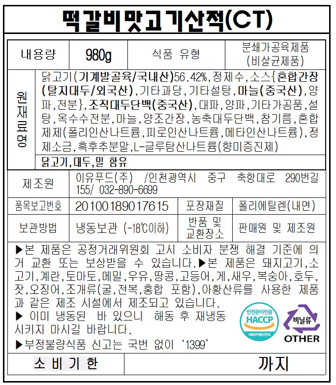 오뚜기 떡갈비맛고기산적(70G*14입 980g/EA)