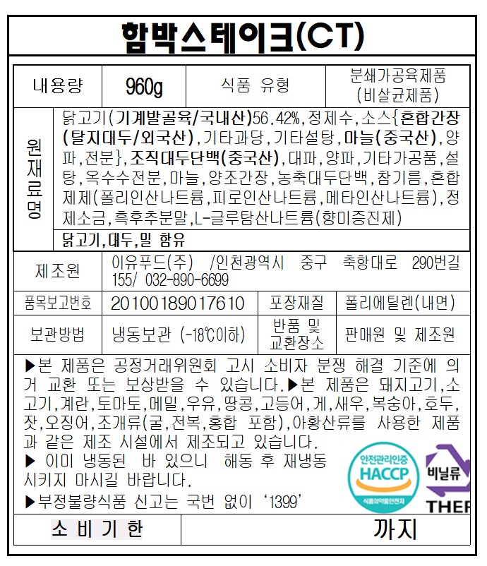 오뚜기 함박스테이크(60g*16입 960g/EA)