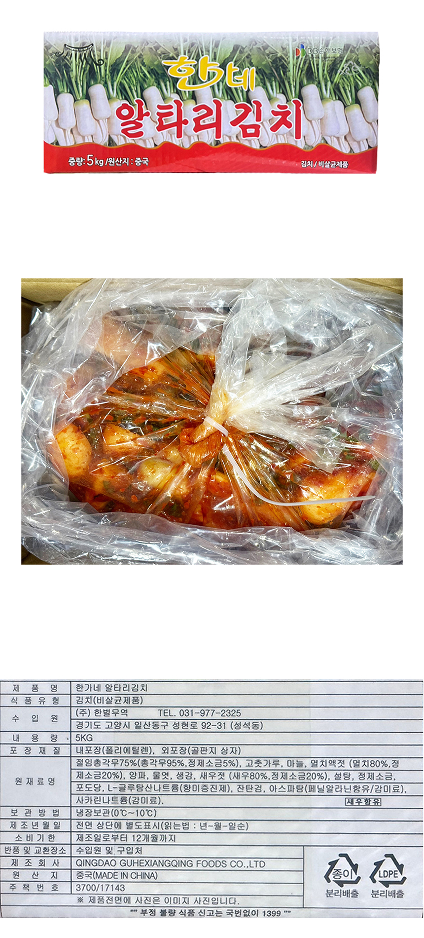 한가네 알타리 김치 5kg 총각김치 알타리김치