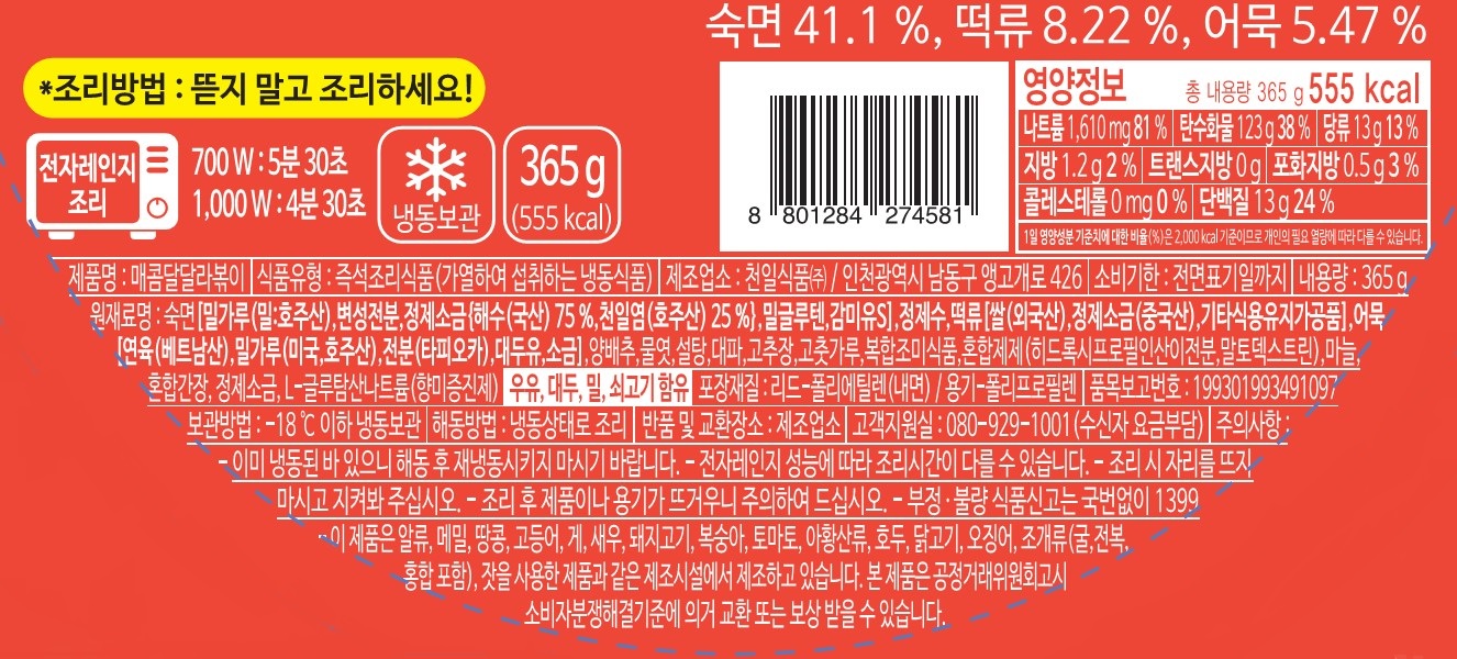 천일식품 매콤달달라볶이(용기 365g/EA)