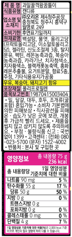 오리온 과일꿀꺽왕꿈틀이(75g*9봉입 675g/EA) 이미지