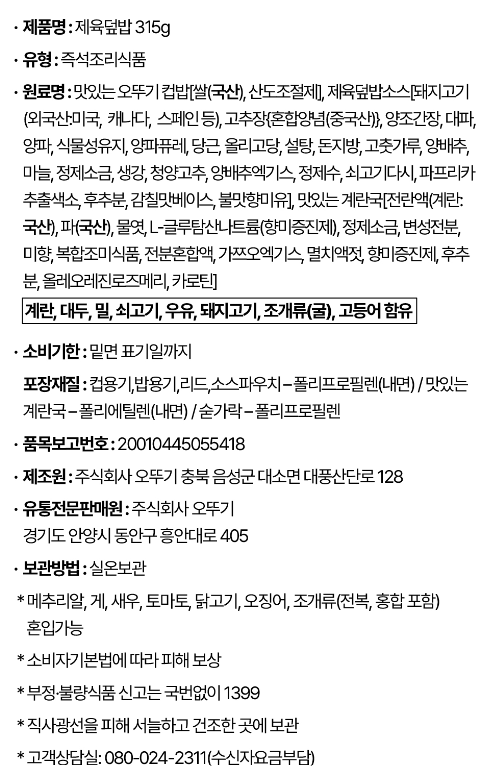 오뚜기 컵밥(제육덮밥_즉석국포함 315g/EA)