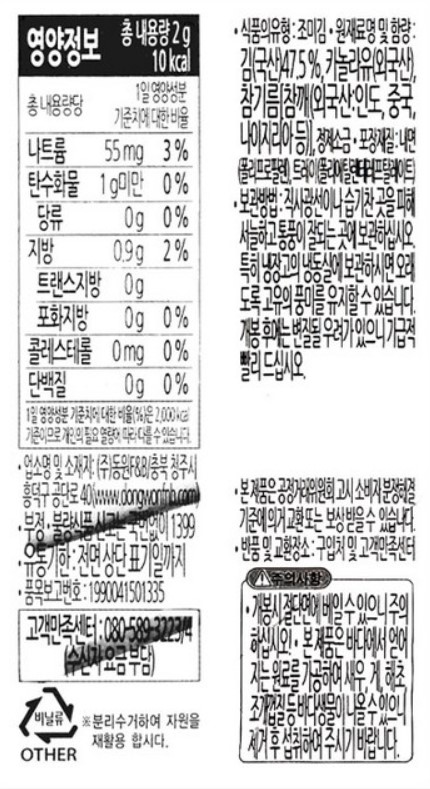동원양반김 도시락김(4D호_8절6매_10봉입 20g/EA) 이미지