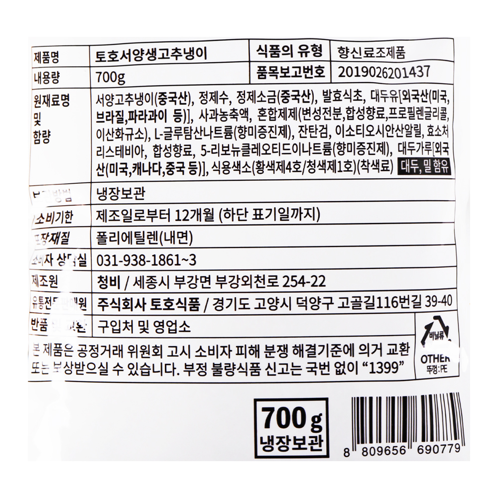 토호식품 서양생고추냉이(외식전용 700g/EA)