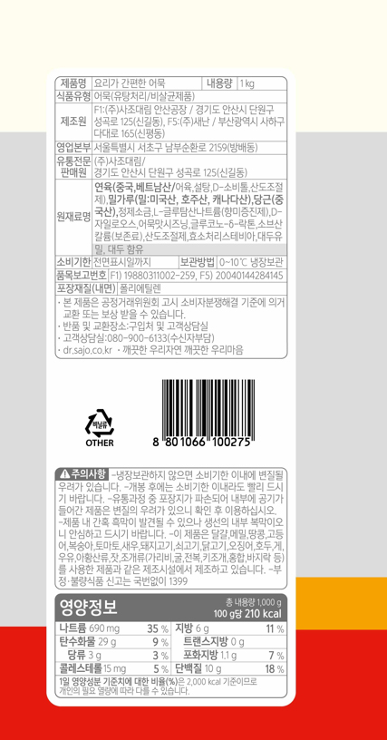 사조대림 사각어묵(ck센터용 절단_마당놀이 1Kg/EA)