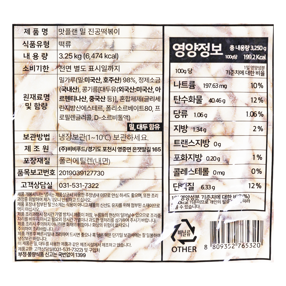 맛플랜 밀떡볶이(외식전용 10mm 3.25Kg/EA)